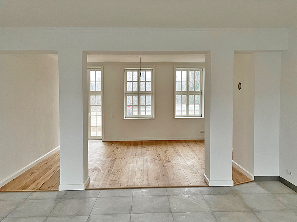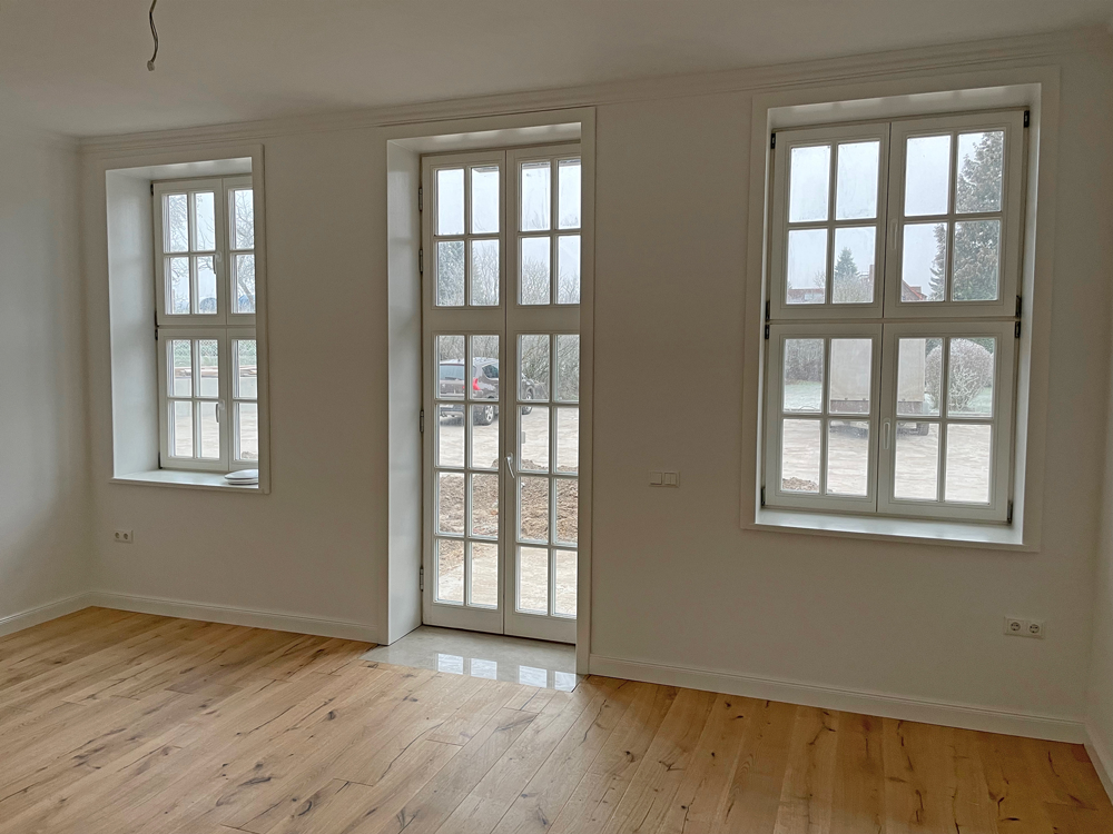 Heute steht das markante Bauwerk mit der für die Region typischen Ziegelsteinfassade unter Denkmalschutz. Es beherbergt neun moderne Wohnungen im Standard eines KfW-Effizienzhauses 100. Die Sanierung ist geprägt von viel Liebe zum Detail – vielleicht auch deswegen, weil der Bauherr im Ambulatorium zur Welt kam. „Von außen ist es dem Gebäude nicht anzumerken, was sich innen alles getan hat. Die Fassade ist originalgetreu erhalten“, schwärmt Anka Unger. Sie ist Geschäftsführerin eines Chemnitzer Herstellers von Holzfaser-Dämmsystemen, der die Materialien für die Innendämmung lieferte.