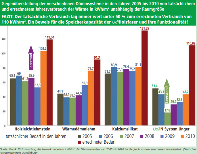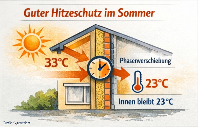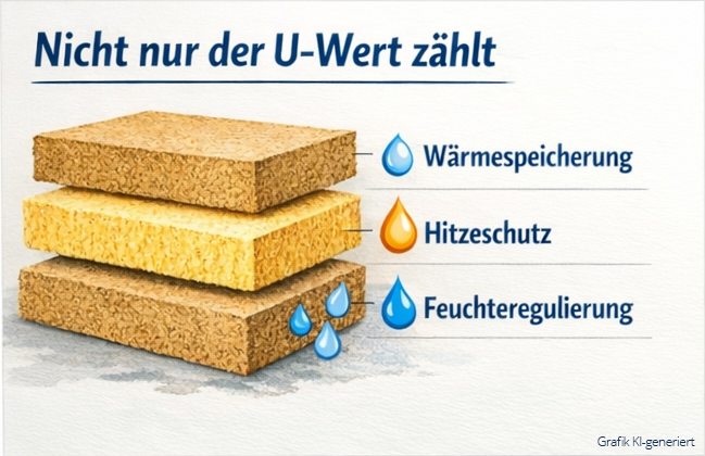 - Ursache ist die hohe Wärmespeicherfähigkeit und kapillare Feuchteregulierung der Holzfaser